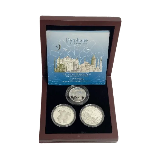 The 2010 European Capital of Culture Silver Coin Set is a collector’s item commemorating Istanbul’s recognition as a cultural hub. The set includes three intricately designed silver coins, each symbolizing the city’s rich heritage and cultural significance. Packaged in a beautifully crafted wooden box, it also comes with a certificate of authenticity, making it a valuable addition to any coin collection.