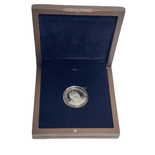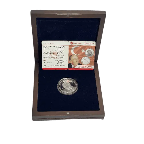Mint silver coin featuring Alparslan Türkeş, a prominent Turkish politician and nationalist leader, as part of the 2023 Republican Period Turkish Politicians series (No. 3). This collector’s coin showcases intricate design and fine silver craftsmanship, representing a significant figure in Turkish political history.